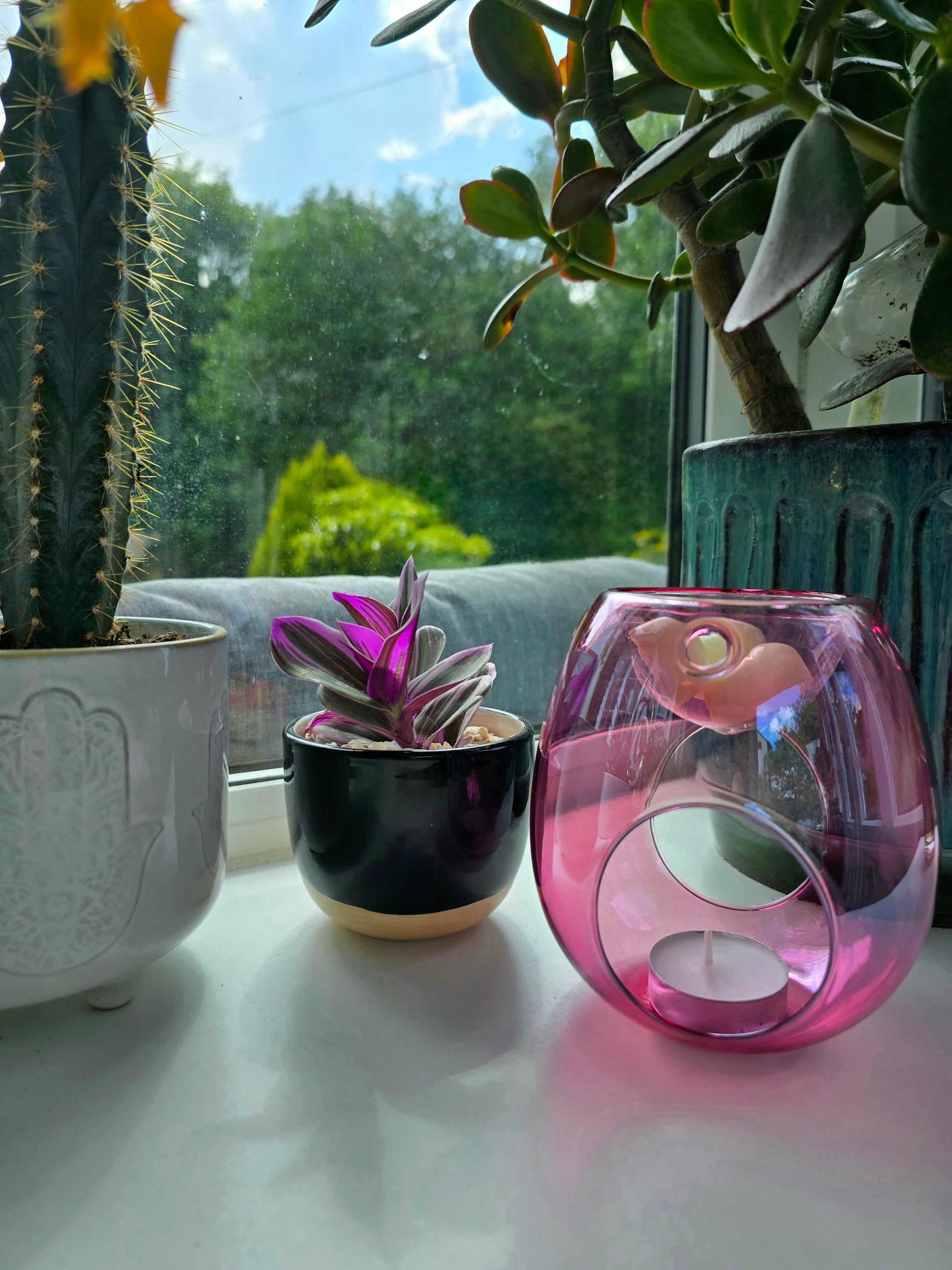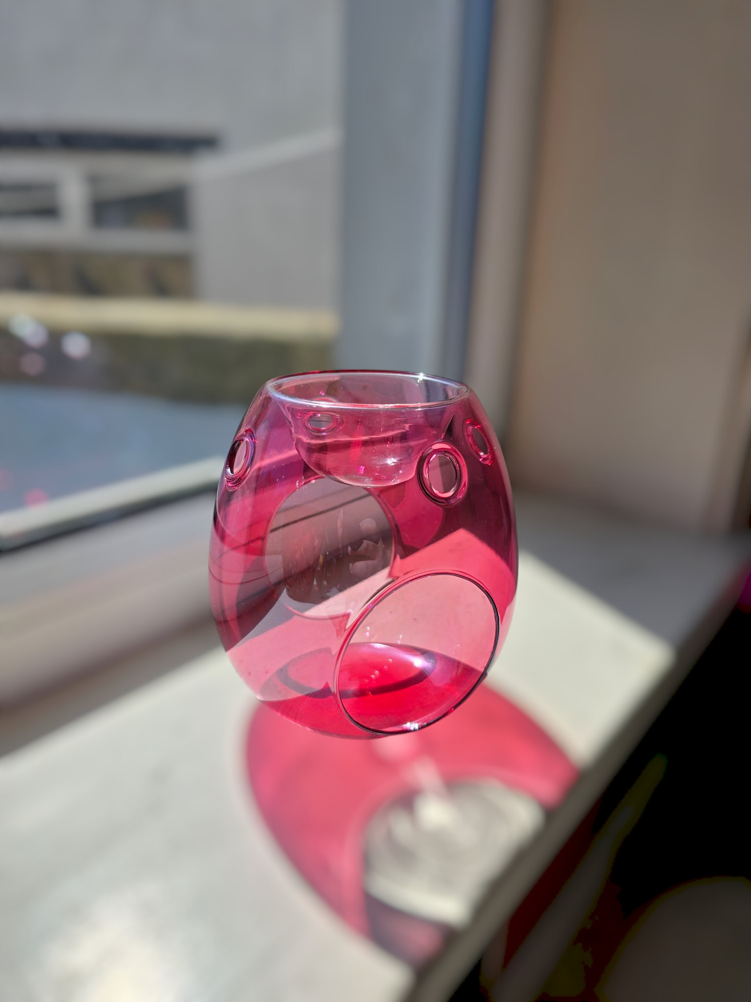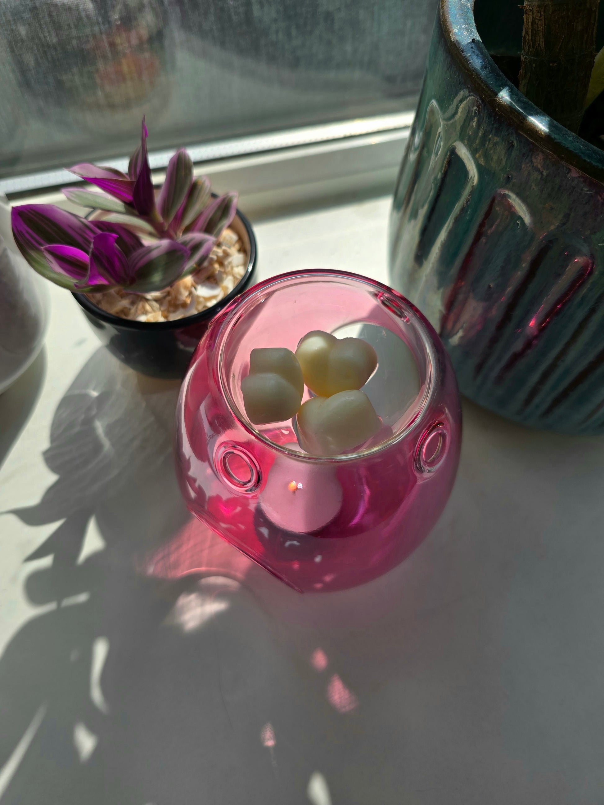 Add a pop of playful elegance to your home with our Pearl Pink Wax Melt Burner from Flicker Apothecary. Crafted from stunning pink glass with a bubbly, modern design, this unique wax melter is perfect for infusing your space with your favorite fragrances while serving as a chic decorative piece.